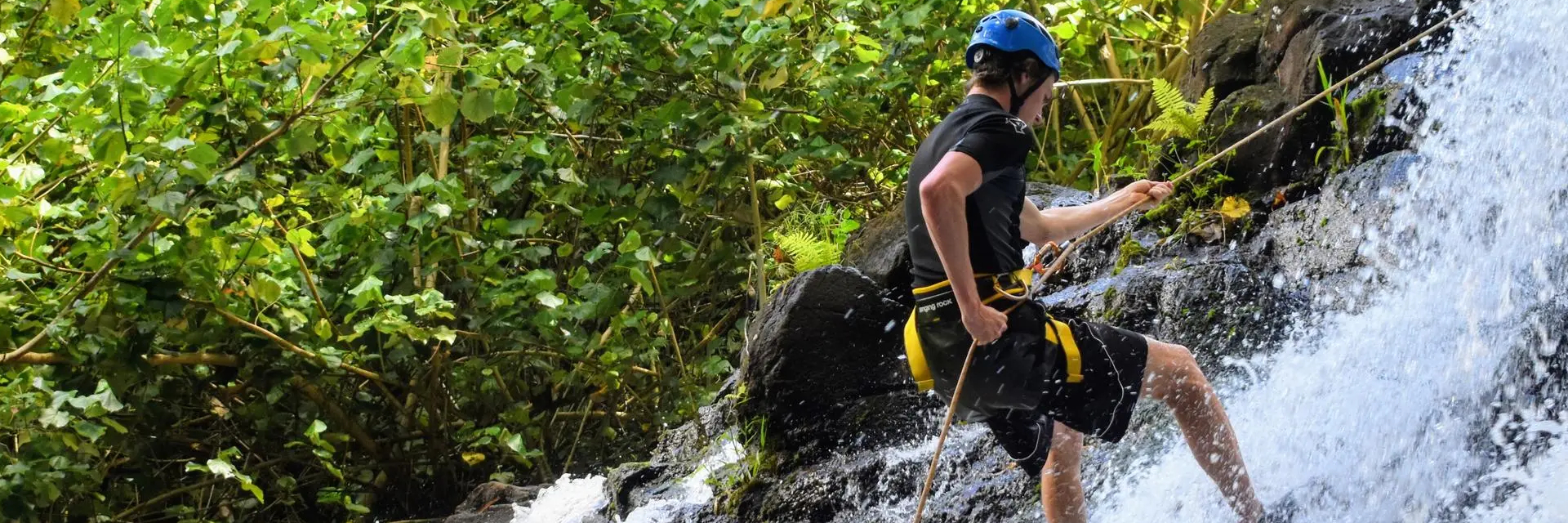 It is required that you either use a swimsuit (women), bareback (men), or fitted top during rappel portion.